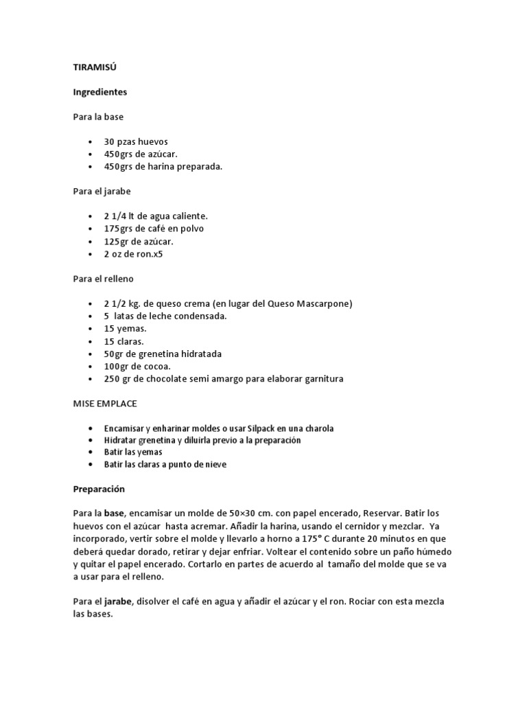 Tiramisu Receta 50 Porciones Pdf Crema Queso